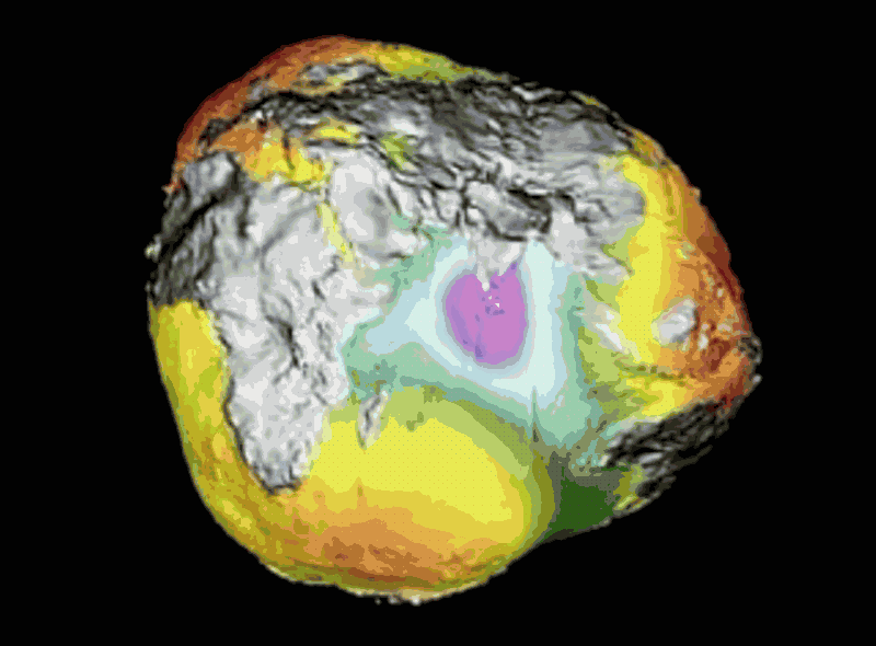 Cox and his colleague, Benjamin Chao of Goddard, were at first baffled by the sudden reversal and flattening of the gravity field. They considered that ice melting at the poles and raising the overall sea level could be the culprit. Calculations showed, however, that "you would have to drop a 10x10x5 kilometer cube of it into the ocean every year for the past five years." Separate measurements of sea surface height from NASA's TOPEX/Poseidon mission don't support this scenario.