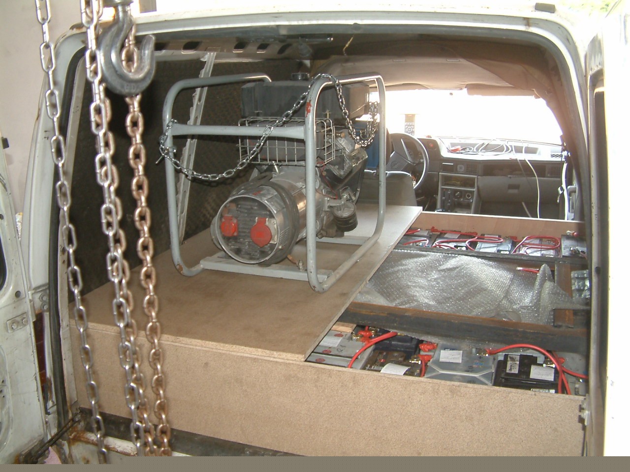 Here is one of images of my MY HYBRID VERSION for my electric car, MY prototype. I borrow 3 phase AC petrol generator who was working in driving and I fit over battery and this generator was supplying voltage to inverter and in the same time was charging batteries in driving.... It was too noise. I just try is this possible AND IT IS. WORKING EXCELLENT. |