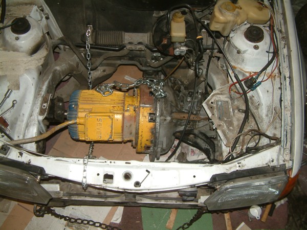 - VALJCI 13 APRIL 2007. PRVI TEST MOTORA U ZVJEZDA SPAJANJU MOTORA SA CISTIM ISTOSMJERNIN NAPONOM SA BATERIJA . Sa ovom konfiguracijom motor je pokazao da moze automobil da ubrza na test valjcima do 60km na sat u petoj brzini. Potrosnja struje oko 9-10 ampera. Pocetna brzina OBRTAJA je podesena na 0 do 1500 OBRTAJA. |