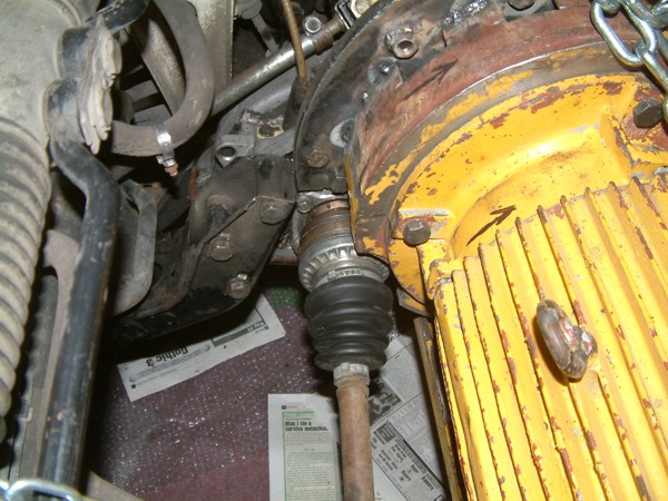 GEAR BOX IS THE SAME AS IT WAS BEFORE! The adapter plate had to be grinded to give space for right constant velocity joint. The power from the motor is delivered to the wheels through already existing GEAR BOX, which transform rotation in different ratio to the CV (CONSTANT VELOCITY) JOINTS deliver power to the wheels, twisting and flexing like a wrist joint as the steering wheels turn and the suspension moves over bumps. They are packed with grease and covered with rubber boots