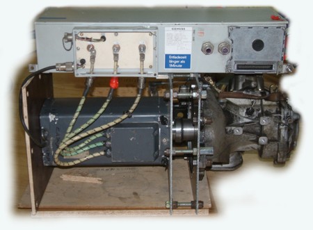 Opel Corsa A engine space from below with SIEMENS three-phase alternating current synchronous motor with