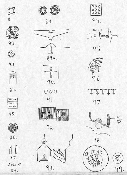 | THE HUMMINGBIRD MESSENGER Saw a very tiny bird with big eyes, on a large towel. (At first I thought of the bee bird insect seen the day before. It was a big fuzzy bumble bee with a long needle beak like a hummingbird, and I'm still not sure what it was, but it's rare, and I have only seen it once last year.) But this bird on the towel was very small and with unusually large eyes, that gave it a youthful appearance. (Saw a show on TV the other day, that was a study on what men are attracted to. One was large eyes, and another high cheekbones, and also a shapely figure. All of these were connected with youth, and I had been studying and thinking on these things a few times recently.) Saw a spiny tree that was grabbed and pulled out of the ground and folded like it was going to be thrown in the stove to be burned. It was like the dead Bunya Bunya tree that used to live in front of the Big House when I was younger, and was killed in the one really hard frost of 1968 or sometime. My dad always mentioned it as it was trying to make a comeback, but it was never the same. (I just recently checked, a few days after this image, and saw that the tree is still alive and looks OK, but is short and bushy.) It is a real spiny tree with stinging nettle leaves like a evergreen. I used to park my dirt bike behind it, and always got stung. I haven't thought of that tree in a long time, and now it's used as the perfect symbol. This proves they can even pull a long ago fact out of the hat. The spiny tree image meant to stop disharmony. MANNA BIRD PRODUCTIONS An image of lifting a plywood cover on the big rectangle stainless steel water tank (like one I have), and could barely see in the dark, a small sick looking spinach plant trying to grow in there. Then the thought "Plants don't grow in darkness," came. This ties into the big eyed bee hummingbird on the towel. The bird messenger is drying off, after taking a dip in God's word, or the water in the tub. The green spinach plant ties into the scene of yesterday, when a fire swept through in front of the big ranch house. That's also where the spiny Bunya Bunya tree lived. We are the new plant growing in the water, but need light. Saw a amazing animated moving vision, in a semi- dream but still awake state. At first there was a reddish brown rock face, and then a deer takes shape and the picture moves. The deer is running across the rock face, and flows like a shadow cartoon. As it moves, there is a melting shadow type change of it's form, and the body itself is a view of the woods it's running through. After the deer, there was a big eagle type bird flying across the rock wall. It first formed the way a fire would burn through a sheet of paper suddenly, then grew bigger with a melting effect, got more clear, and took shape and moved across the wall, the way a shadow sweeps the ground from a bird flying overhead. It had that blurry rounded edge effect. I could see its legs take shape soon, and it was stretching them out, and then big curled claws were seen. Its wings moved in a slow warping shadow and then the scene was over. The bird's body was a moving window of blue sky with clouds, like there was sky and clouds behind the rock, and was seen only through the bird's body as it moved across. The deer was green with shady areas of leaves of brown and green, like you saw the still woods in its body as it ran. You could see the full horns of the deer once. It's hind feet sprang high, and the front feet also did come down and spring back up. It was really bounding with leaps, and the still shadows of the woods seemed alive as the picture moved across. In a magazine yesterday, I saw some ancient rock paintings that were just recently discovered in a underground cavern in France. These are very old pictures of a mammoth, hyena with spots, and big elks. There wasn't an eagle though. The eagle in this vision has a meaning obviously. After that most amazing scene, I saw a vague dream image briefly, of a person that seemed to have his chest out, and with big nipples on his breasts, and chest inflated. It seemed like he was pointing the nipples and breasts towards the sky, and looking up in that same steep forty five degree angle. The person was me for some reason, but did not look like me really, and seemed to have woman's breasts, but I knew it was a man. An image of five workers sitting in a row behind some tall grass at the end of the last row, at the right corner of a grape field. I'm not sure if this is in the right order with other images, but is close. Maybe it was after the cave painting vision, or the wooden toy man and magnet. Some of the images might be in the wrong order, because when I wrote them down I couldn't remember them all, and added some forgotten ones later. The last image seen, was of a page of white paper that said "Evening Prayer," written in big letters across the top, with script like the title of a newspaper. There was smaller normal print covering the whole page, and at the bottom I noticed the writing was a little bigger, and it read "Manna Bird Productions." I knew they were saying this was a good title for the book. May second was a very loaded with images night. New years was amazing also. A ROUND TABLE WITH A ROUND GLASS May 3,95 About a week ago or less, was an image in a dream that I almost forgot. It was the pinkish waterbed jacket that's covering the old mattress in the shed trailer full of dirty cloths and excess storage. The pink bed stood alone in the picture, and later I decided to clean everything up to make it that way. Was puzzled what it meant, but later thought it could mean a bed of sacrifice, or is a message to clean the place up. Another image I almost forgot, was a image of a foggy clear plastic bicycle water bottle, like one I have. I squeezed the upper part below the snap cap, and saw the plastic crack as my thumb started a split. Right then I thought "Oh no, it's going to leak," and knew it was old and brittle from