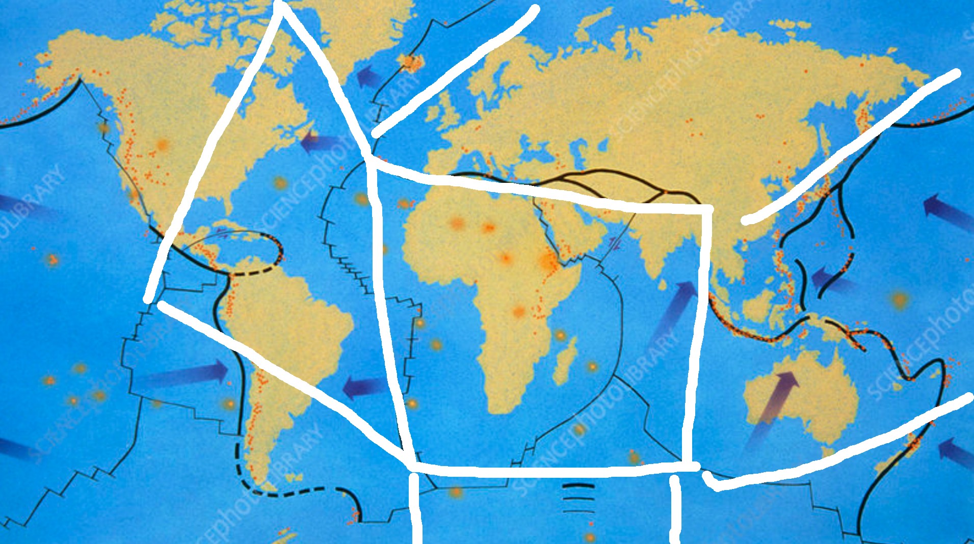 LEFT IMAGE -THE BLACK LINES ARE BORDER OF SCIENTIFIC TECTONIC PLATES... RIGHT IMAGE -RUDOLF BOŠNJAK -WHITE LINES ARE ASSUMES THAT ARE EDGES OF THE CUBE BELOW SURFACE