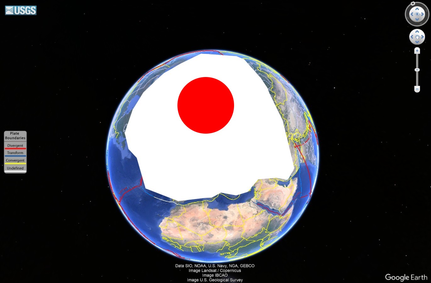 CHAPTER 5: THE CUBE SQUARE SIDE BENEATH PACIFIC OCEAN TECTONIC PLATE Red circle represent circular opening hole ON ONE SQUARE SIDE OF CUBE.